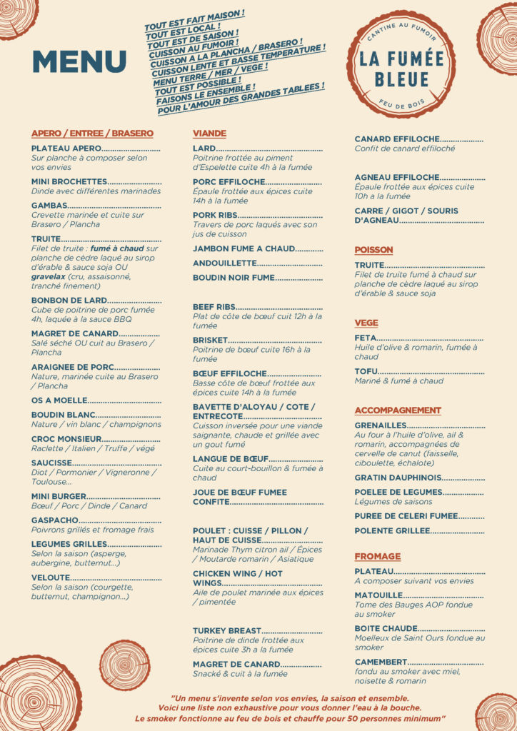 Bienvenue à La Fumée Bleue, cantine au fumoir et au feu de bois.